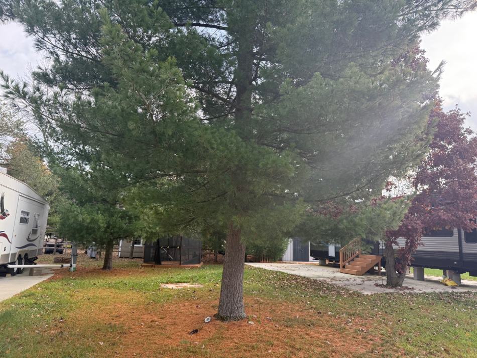 Includes Large 55×90 lot, double cement pad, trailer cover, gas grill, shed, all patio furniture & fire pit